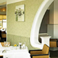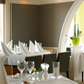 De drie geschakelde restaurantruimten zijn als karakters van eenzelfde familie opgevat. Vanuit het gegeven dat daglicht, ligging en uitzicht verschillen geven variaties in stoffering en verlichting de ruimten ieder een eigen identiteit. Gestoffeerde plafondpanelen zorgen voor een prettige akoestiek. Met maatwerk meubilair is voor optimaal ruimtegebruik gezorgd.