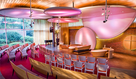 Alle attributen, zoals bloemplateaus, katheder en kaarsenstandaarden, zijn verrijdbaar. Het kruisbeeld aan de wand is als een boek open (kruisbeeld) of dicht (vlak paneel) te slaan. Verder is projectie van (persoonlijke) beelden mogelijk gemaakt. En het verlichtingsplan voorziet in een grote keuze aan kleuren.