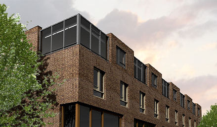 Bij het ontwerpen van de dakopbouwen is gezocht naar aansluiting met de onderbouw. Tegelijkertijd is de strenge contour van het bouwblok doorbroken door vorm en materiaal.