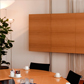 Om een vergaderzaal intiem genoeg te maken voor bilateraal overleg kan met een semitransparant draadgordijn de ruimte worden verkleind terwijl een opgesloten gevoel wordt vermeden. Het gordijn is tweelaags waarin een patroon is geknipt. Ook wanneer de scheiding niet in gebruik is vormen de draadgordijnen, samen met de gefineerde wandpanelen, de aankleding van de vergaderzaal. In een van de wandpanelen zijn alle audiovisuele middelen geïntegreerd.